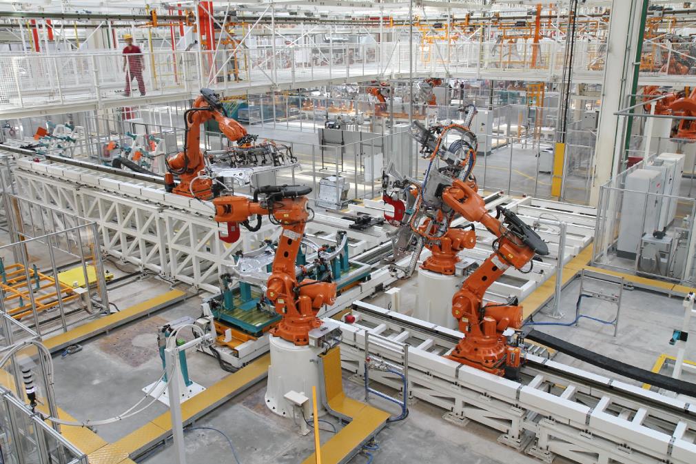 自动化率:92%,人工上件,其余全部由机器人完成(点焊、铆接、涂胶、搬运)
